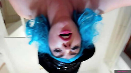 Buxom bluehaired Jennifer titfucks and sucks a dildo