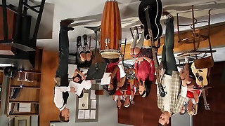 Fine hot blonde housemaid on the laps of a domineering brunette cougar
