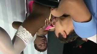 Horny brunette girlfriend gets her unshaved pussy licked and humped in kitchen