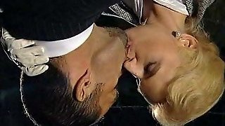 Lucky guy gets cauth by his blonde MILF boss in stocking