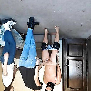 FFM session 55 Two mistresses Dasha and Lina K lead their gagged horse around the bedroom