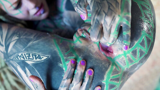 TATTOO ANAL gape loving girl CUMPLAY