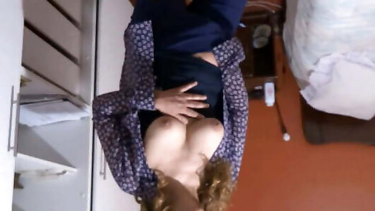 Solo red-haired cougar, Dani Jensen is milking, in 4K