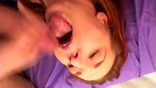 Super-cute redhead teen gets a lot of spunk on her face - 90's retro fuck
