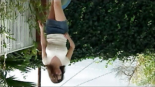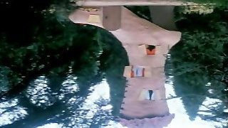 Babe flashing firm tits trim gash retro nylon on picnic