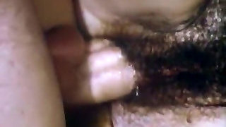 Lean and sexy white chick with meaty boobs and very hairy pussy