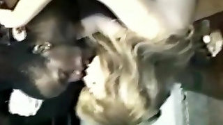 Naughty blond head bitch got her smelly slit eaten by horny African stud on kitchen table