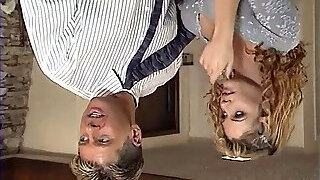 Amazing Platinum-blonde Lesbians Make Out On The Stairs Before They Go All Out And Take Their Fake Penises Out