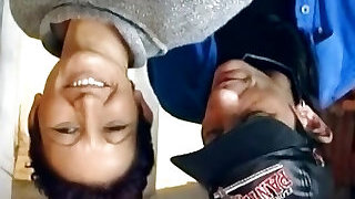 DL2203- Middle-old couple having an affair in a public toilet in the forest