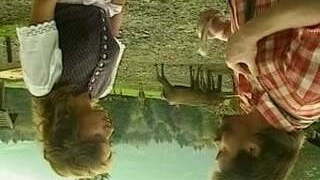Insatiable German babe gets banged by two loaded beefsticks at the same time