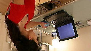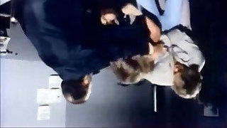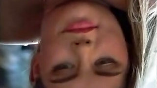 Smallish Asian teen Threesome sharing a Cock and Double BJ cum swap in toilet